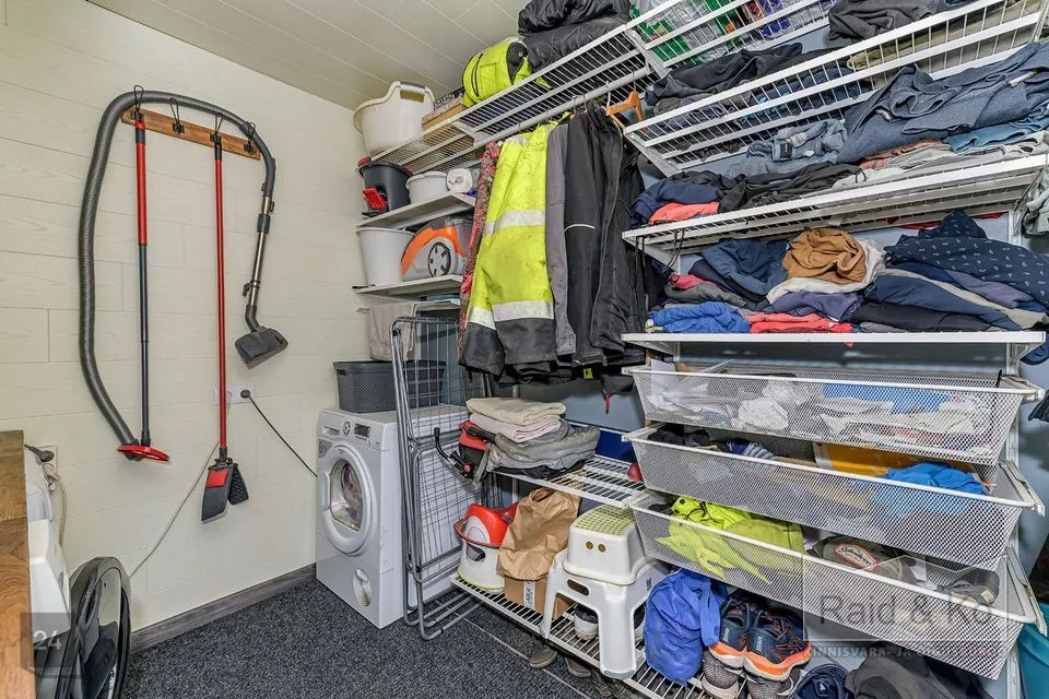 Esimesel korrusel paikneb ka WC-duširuum ning abiruum. Abiruumist on pääs garaazi. Garaazi uks avaneb automaatikaga.