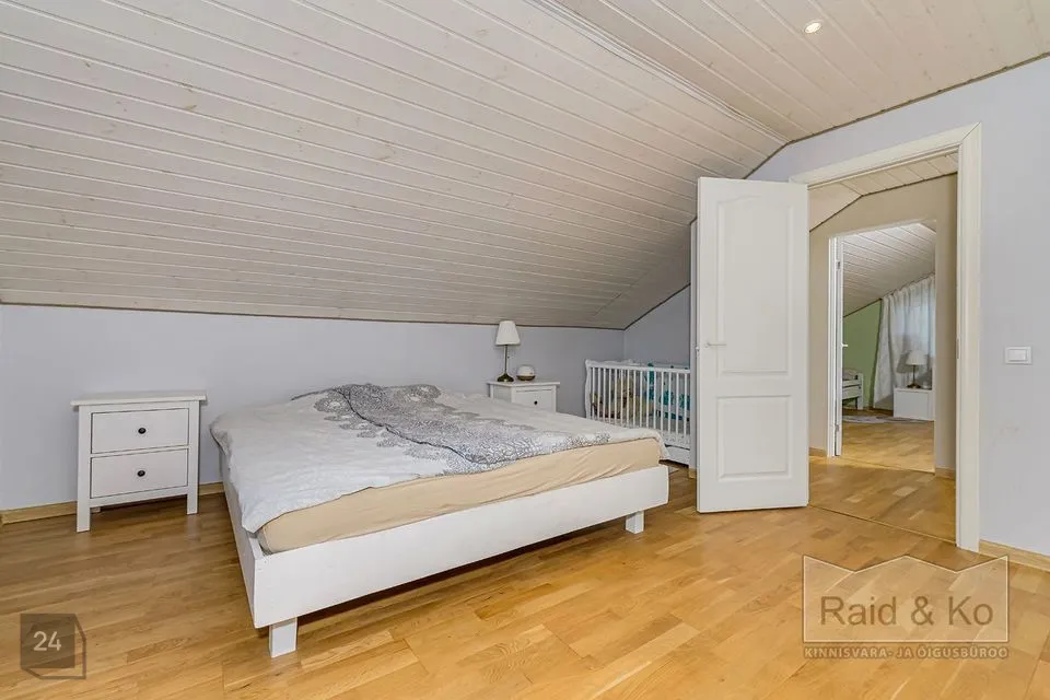 Maja teisel korrusel on väike trepihall, kaks magamistuba ning rõdu (õhtupäikese suunas).