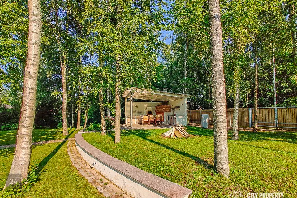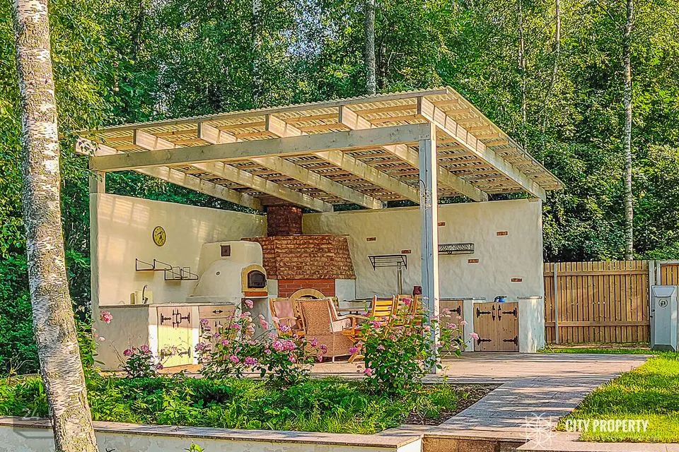 Kinnistu lõunapoolsesse osasse on ehitatud valgust läbilaskva katusega varjualune. Varjualuses on olemas puupliit, kamin, pizzaahi ja kraanikauss. Varjualusesse paistab õhtupäike ja sinna viib hoone juurest sillutisega kõnnitee. Varjualusele on väljastatud ehitusteatis.