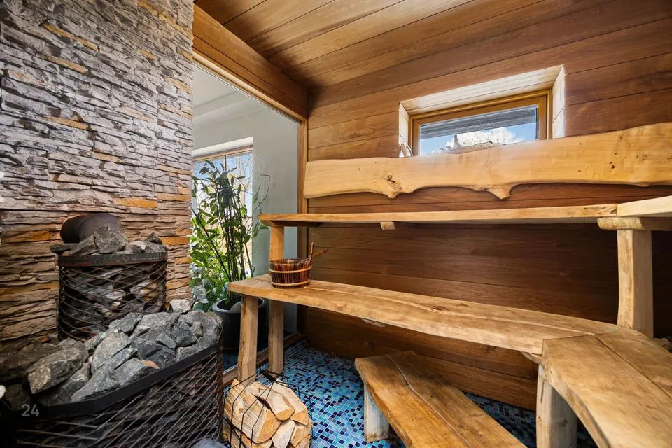 I korrusel on saun, avar duširuum, tualet ja suure vanniga saunaeesruum (kokku 36m2).