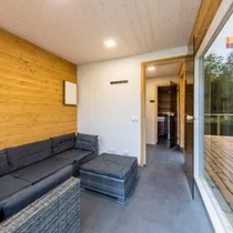 Hoone esimesel korrusel paiknevad elutuba, köök-söögituba, wc/vannituba, tambur, esik, katlaruum ja suur väliterrass 60 m² koos talveaiaga. Toad on kõik suured ja avarad.