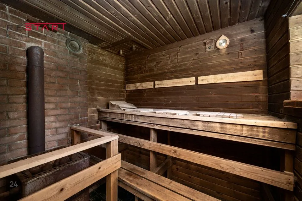 Krundil asub eraldi saun koos kamina, duši ja tualetiga — suurepärane lisavõimalus eriti jahedamateks õhtuteks.