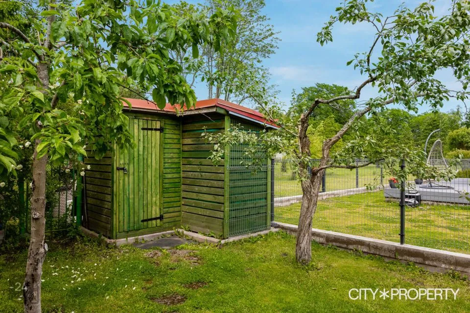 Kinnistut ümbritseb aed ning kogu eramu aed on looduskaunilt haljastatud, kust leiab palju erinevaid puid ja põõsaid ning kauneid taimi. Maja ees autovärav on avatav puldist elektriliselt. Naabrid on meeldivad ja toredad. Garaaži võimalik paigutada palju vajalikku, jalgrattad, muruniidukid ja palju muud. Kinnistul olemas puurkaev ca 38 m sügavusega, kus säilib vesi ka kõige kuivemal suvel.