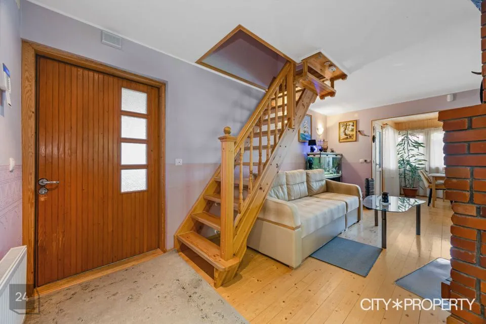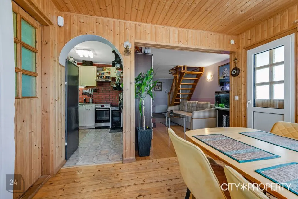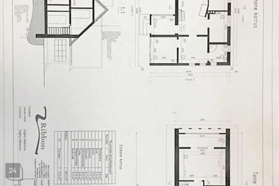Majja sisenedes on avar esik/garderoob, kuhu mugav paigutada üleriided ja jalanõud. Esimesel korrusel on ruumikas elutuba koos söögitoaga, kust pääs privaatsesse sisehoovi kus suur ca 5,7 m2 päikeseline terrass. Kööki sisustab köögimööbel koos tehnikaga (elektripliit, elektriahi, kubu, külmkapp, puupliit). Esimesel korrusel olemas eraldi magamistuba ja abiruum ning duširuum koos WC-ga. Majal olemas maalune kelder ca 8,3 m2 ja garaaž kuhu mugav panna jalgrattaid ja palju muud vajalikku.