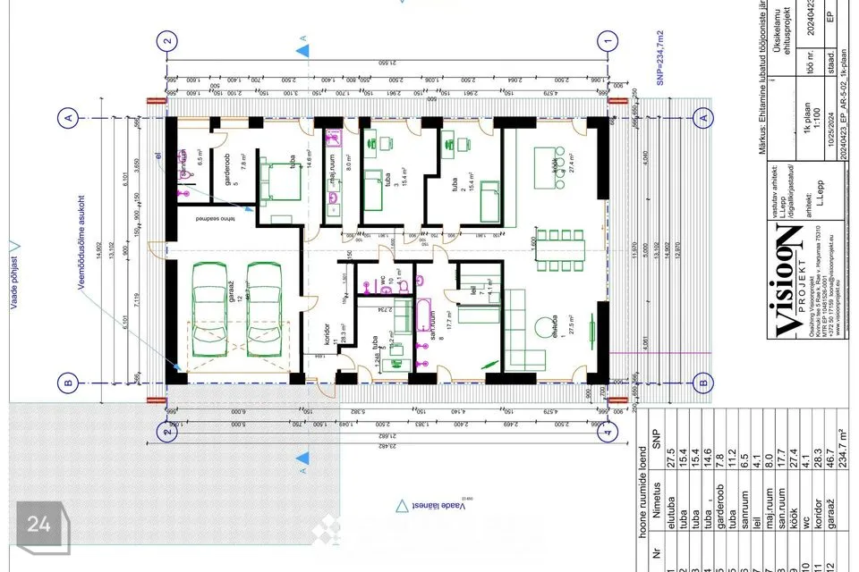 Garaaž kahele autole koos tehnoruumiga 47.1 m² (lisaks on 2 parkimiskohta elamuesisel parkimis- ja manööverdusalal)