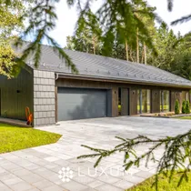 Välisuks on klaasiga must puituks, garaažiuks on tunnustatud Saksa tootja Hörmann poolt. Kandekonstruktsioon on immutatud puidust. Garaažiesisele sissesõiduteele on paigaldatud tänavakivid (Benders).