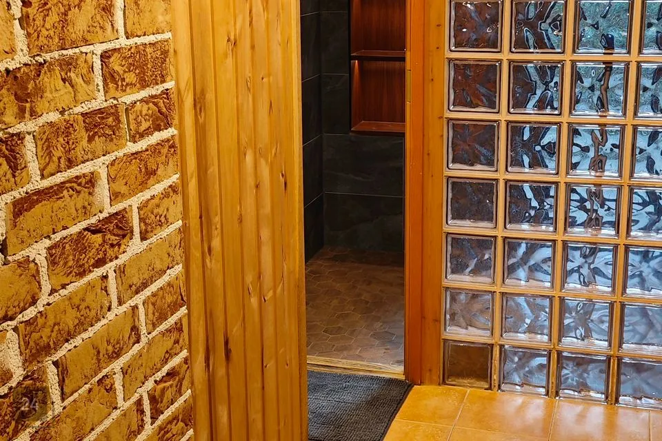 1. korrus: avatud köök-elutuba, esik, WC, majapidamisruum, saunakompleks (värskelt renoveeritud puuküttega saun, dushiruum, leiliruum ja eesruum lükandustega garderoobikapiga, 2 garaaži.