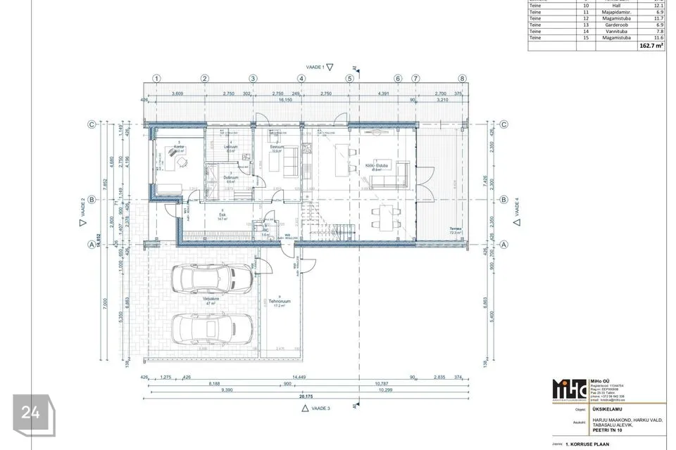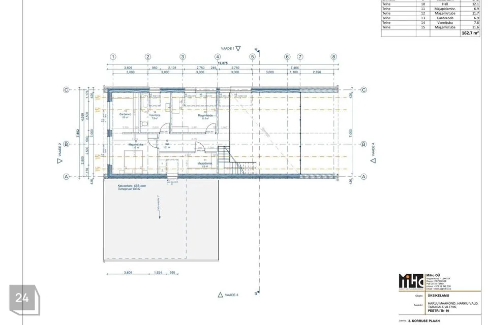 Maja suletud pind 162,7m2, varialune 2 sõiduautole, 47m2.