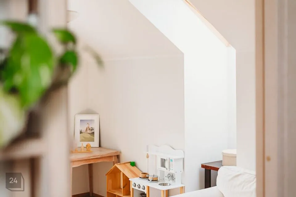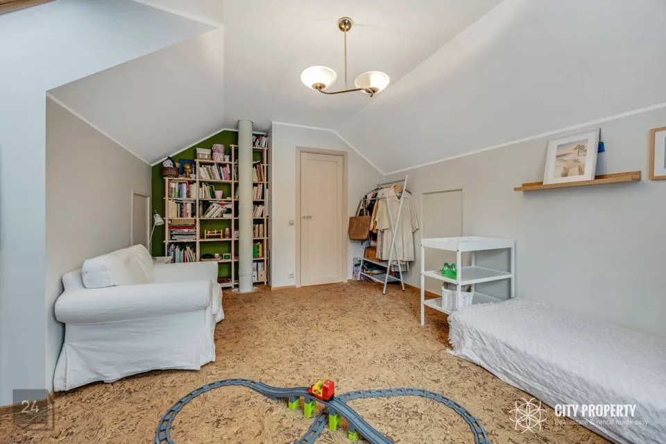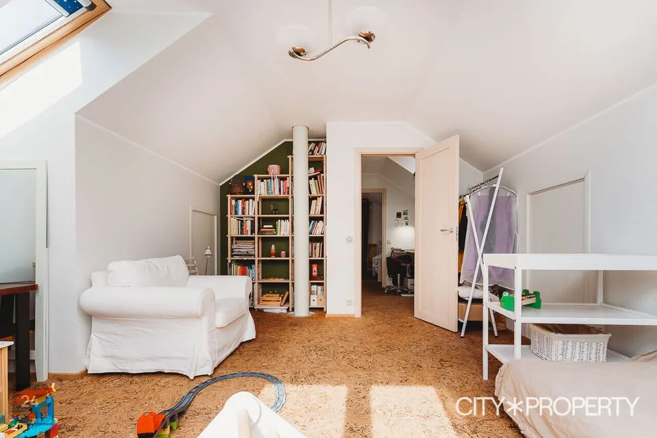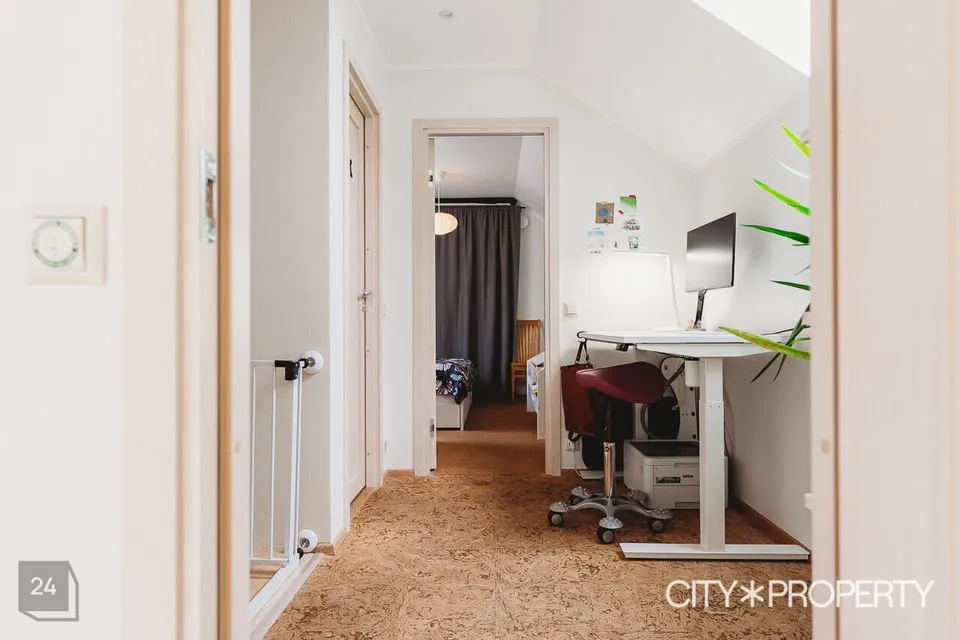 Teise korruse põrandal on Portugali korkparkett - soe ja pehme jalale nii magamistoa kui lastetoa jaoks. Ära on kasutatud ka katusealused ruumid, mis on piisavalt mahukad, kuhu panna suveks oma talvevarustus ja vastupidi. Sinna saab laps luua ka oma väikese Harry Potteri maailma.