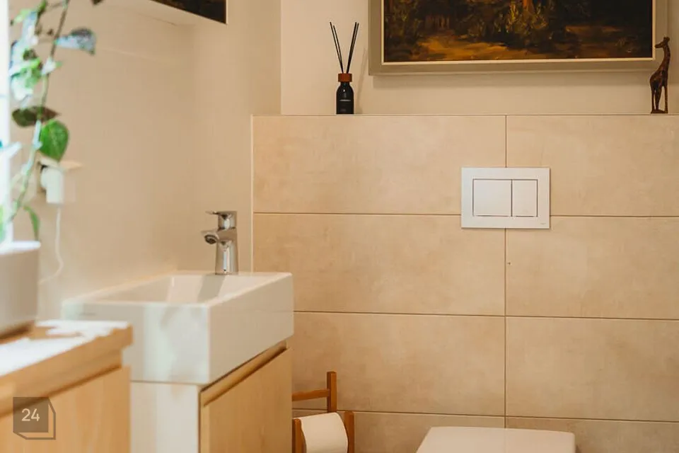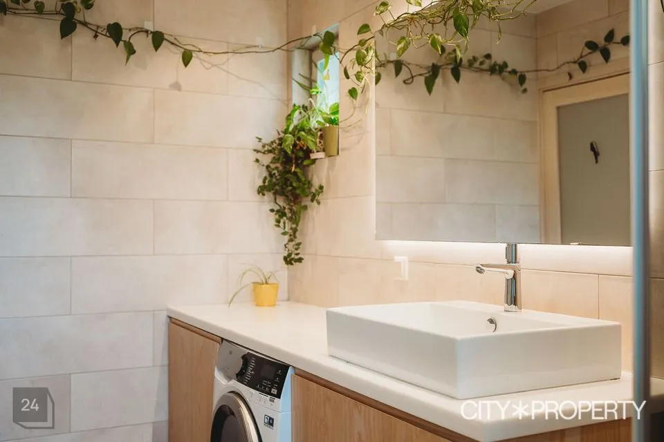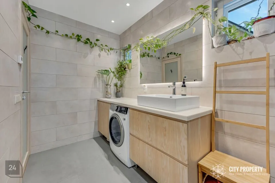 Duširuum on avar ja tervitab kahest küljest päikest. Suur tööpind peidab enda all ka ohtralt sahtleid, kus hoiustada kodukeemiat-esmaabi-šampoonitagavara.