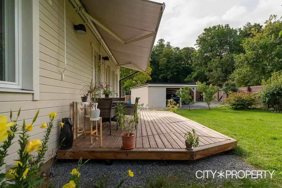Avar ja lilleline ilu- ja puuviljaaed marjapõõsastega ümber maja ning piisavalt ruumi rohenäpule kasvuhooneks või taimekastideks. Komposteerimine. Laste mänguplats. Palmako autovarjualune kahele autole + kuur. Killustikupadi saunamajale või hoopis väliköögile. Rahulikud ja sõbralikud naabrid (see on ka väga oluline, kas pole).
