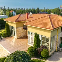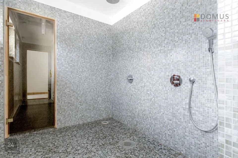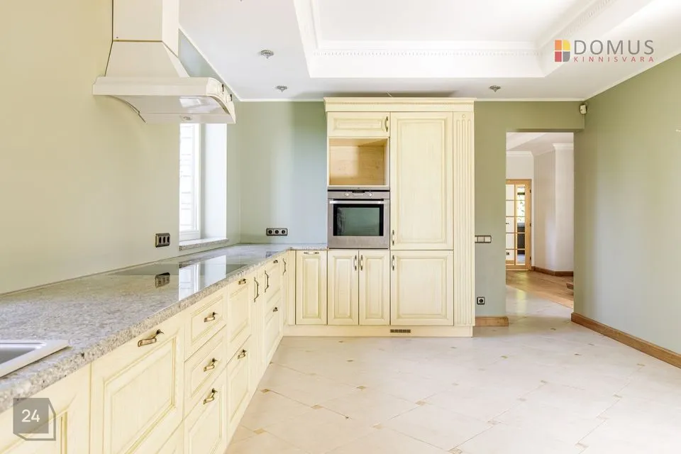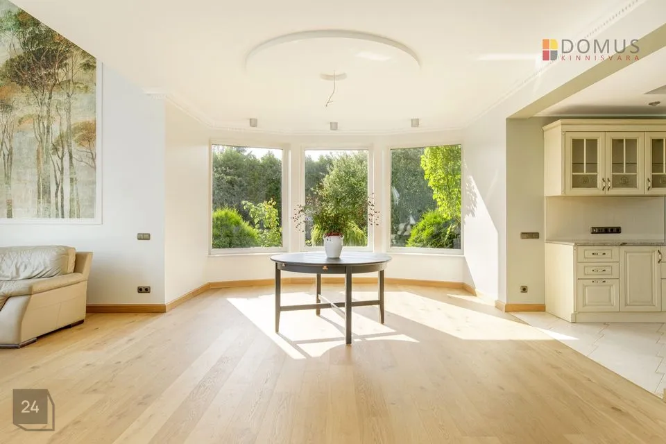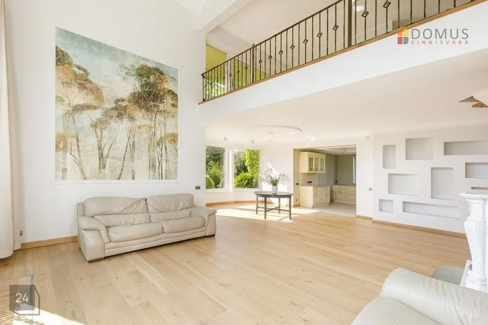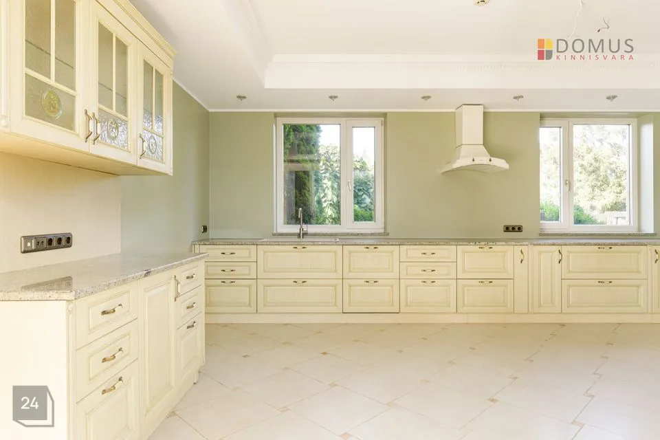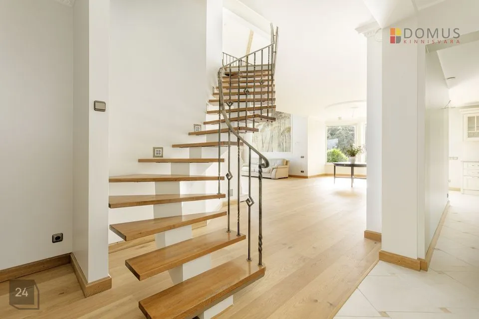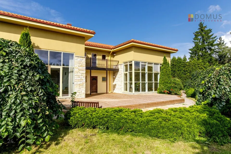 Läbimõeldud planeering ja mugav ruumikasutus: I korrus: esik, panoraamakendega elutuba kaminaga , mis on ühendatud köögiga (81,7 m²), kabinet, dušiga vannituba, kaks tualetti, talveaed, saunakompleks (valmidus ahju- või elektrikerisele) ja garaaž.