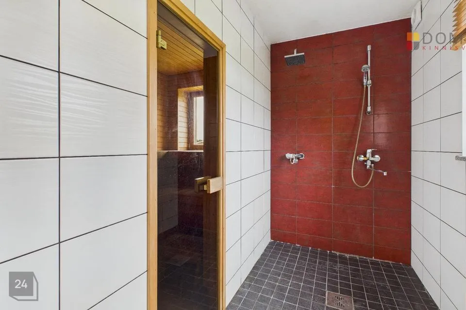 Lisaks on alumisel korrusel puuküttega saun, mis teeb iga külma talve- või sügisõhtu palju mõnusamaks. Sauna eesruumist pääseb samuti terrassile, mis on ideaalne koht, kus peale leili puhata või hommikukohvi juua.