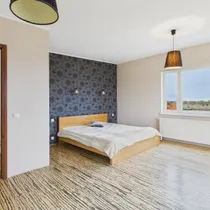 Suurest magamistoast ja vannitoast viivad uksed rõdule, kust avaneb ilus vaade aeda. Lisaks on teisel korrusel suur ja mahukas garderoob-majapidamisruum, kuhu mahub pesumasin, riided ja kõik muu vajalik.