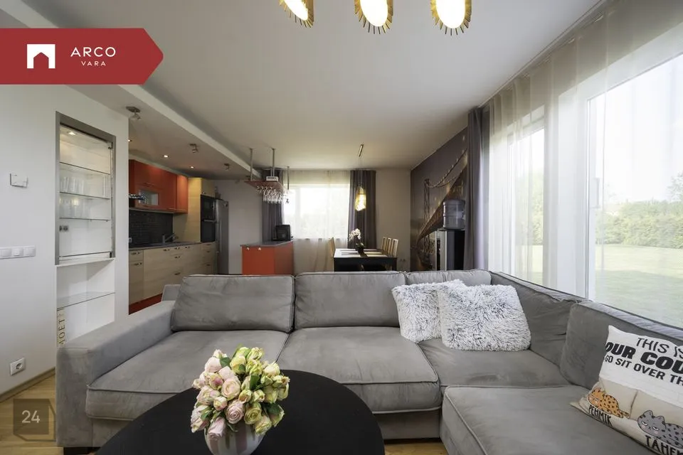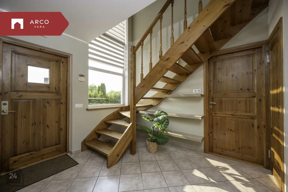 Paarismaja boksi suletud netopind on 187,5 m2, millele lisanduvad maja esine ja maja tagune terrass. Kinnistu on 3 338m2, millest müüdava paarismaja osa isiklik kasutusõigus on ca. 1500m2. Kinnistu on ilusti hooldatud ja haljastatud. Maja ees on boksi juurde kuuluv suur unikiviga kaetud parkimisala, kuhu mahub parkima vähemalt neli autot ning lisaks garaaž. Tegemist on tagumise boksiga ning kogu boksi juurde kuuluv ala on ümbritsetud kõrge elupuu hekiga, mis tagab täieliku privaatsuse. Samuti eraldab kahte boksi mõlema boksi garaazid, mistõttu on tegu sisuliselt eramajaga.