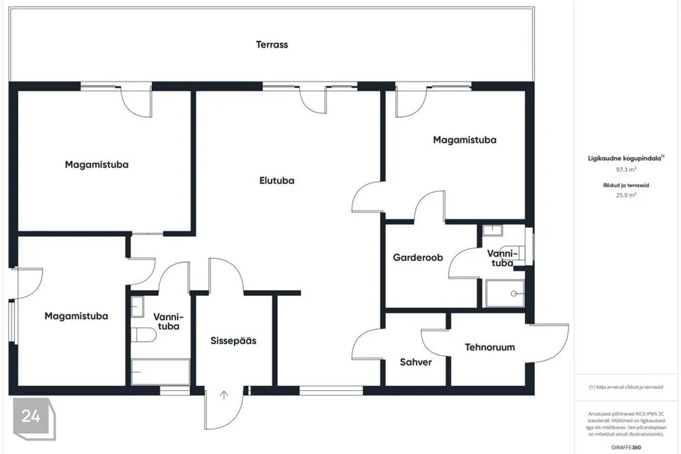Elamispind on 97.2 m², lisaks 25.9 m² suurune terrass päikeselisel lõunapoolsel küljel.