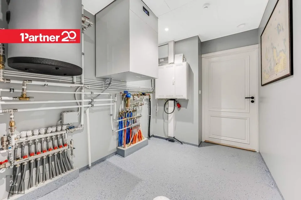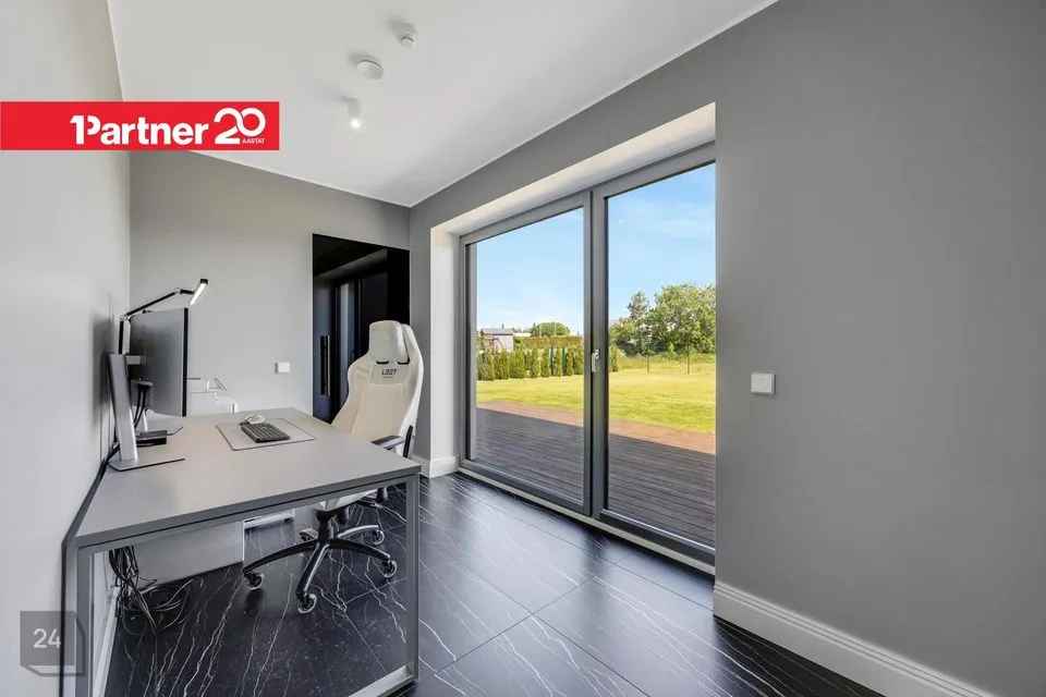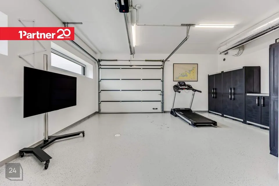 Lisaks asub esimesel korrusel mugavalt kaugjuhitava Saunumi kerisega leiliruum (3,5m²) ja dušširuum (4m²) ning täna tulenevalt pere vajadustest kodukontorina kasutust leidev ruum millest pääs terrassile. Mugavaks parkimiseks või panipaigana kasutatav soe ja mahukas garaaž (31,4m²) ning kuur aiatarvikute ja tööriistade hoiustamiseks.