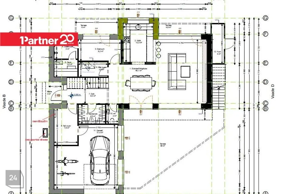 Maja üldpind on kokku 225,8m², millele lisandub 122m² terrasside ja rõdu pinda.