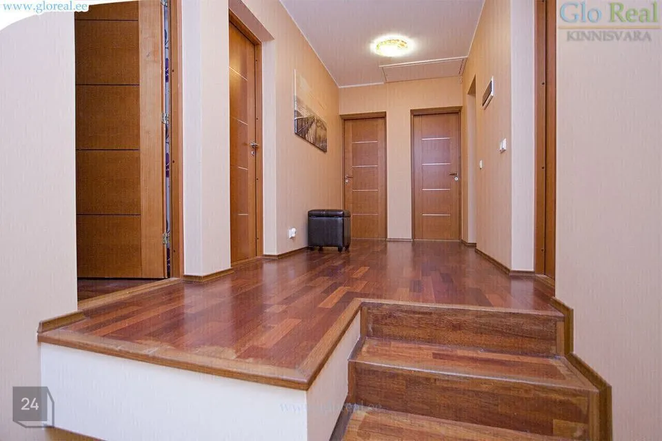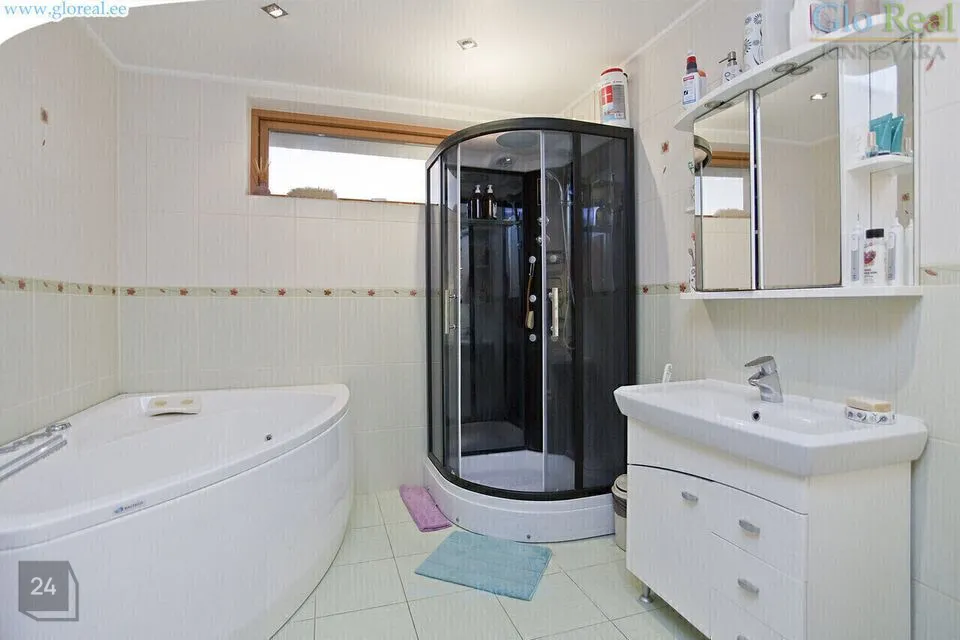 Esimesel korrusel on suur elutuba koos köögi ja sööginurgaga, külalistetuba, garderoob toa suuruses, pesemisruum koos saunaga ning mahukas garaaž. Teisel korrusel on viis magamistuba ja vannituba WC-ga.
