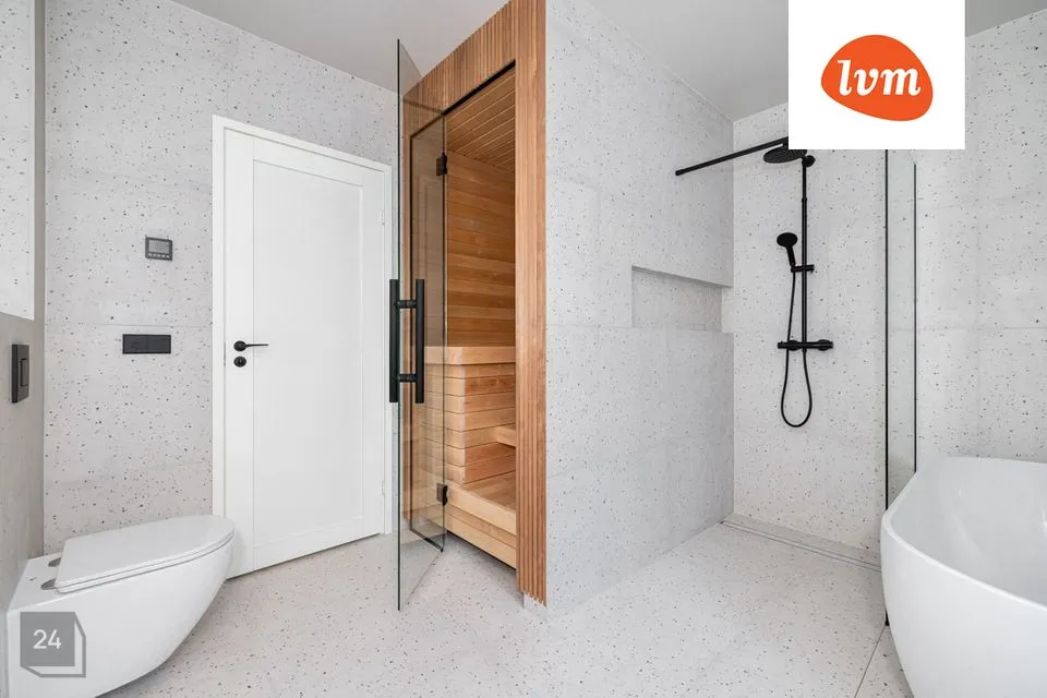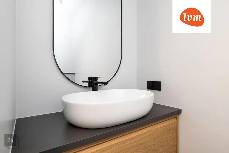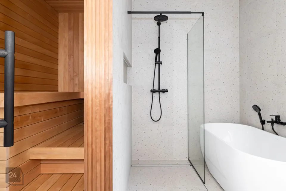 Siseviimistluses on kasutatud heledaid toone, mustade elementidega. Põrandaid katab naturaalne tammeparkett, san.ruume ja esikut keraamiline plaat.