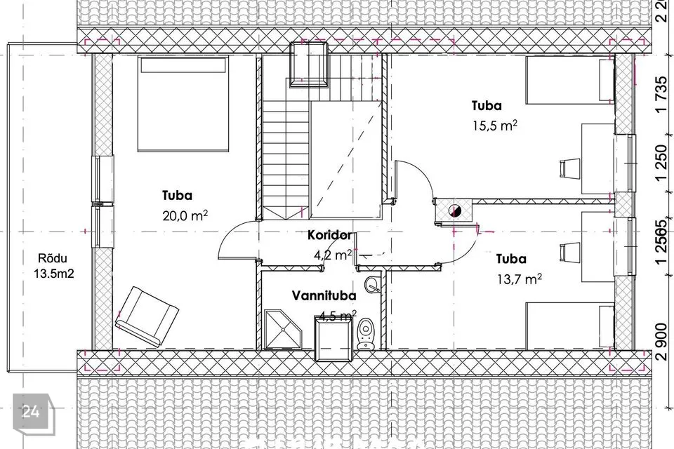 Teisel korrusel kolm magamistuba ja vannituba. Suurest magamistoast pääseb rõdule.