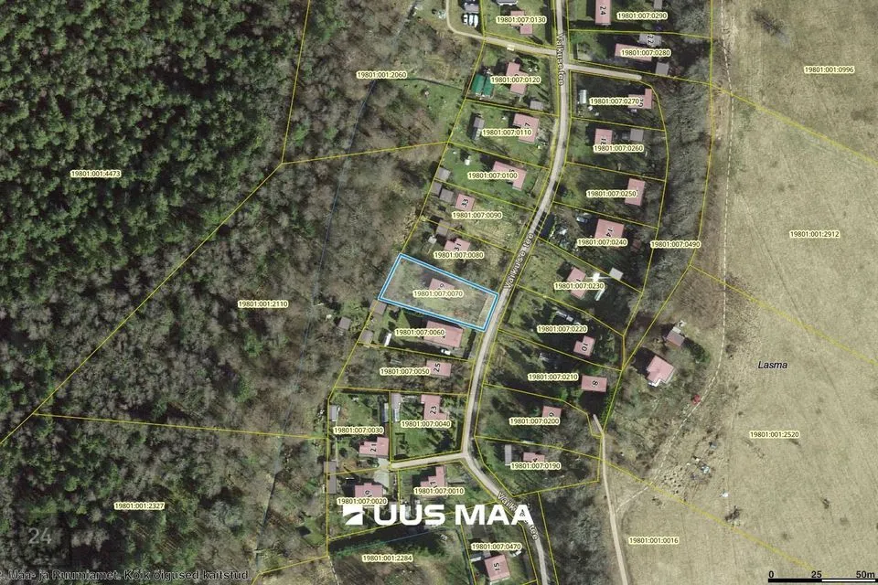 1011 m² suurune kinnistu asub vaiksel asfalteeritud tupiktänaval paekalda ja riigimetsa vahel. Kinnistu taga algab riigimets, mis ulatub kuni mereni. Meri on linnulennult 1,5 km kaugusel. Jalgsi läbi metsa on Vääna randa 3,5 km, autoga 4,5 km.