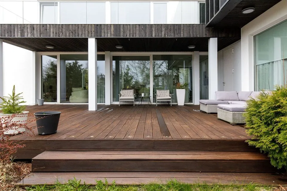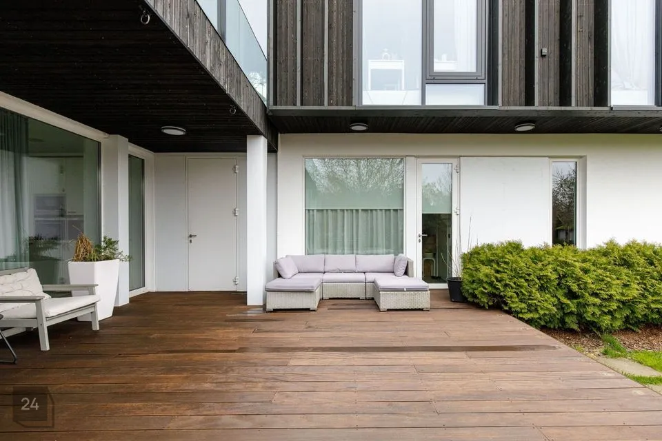 Esimese korruse ruumilahendust ühendab hele ja meeldiv sisekujundus. Elutoast pääseb päikeselisele terrassile, mis on ideaalne koht suvisteks hommikusöökideks.