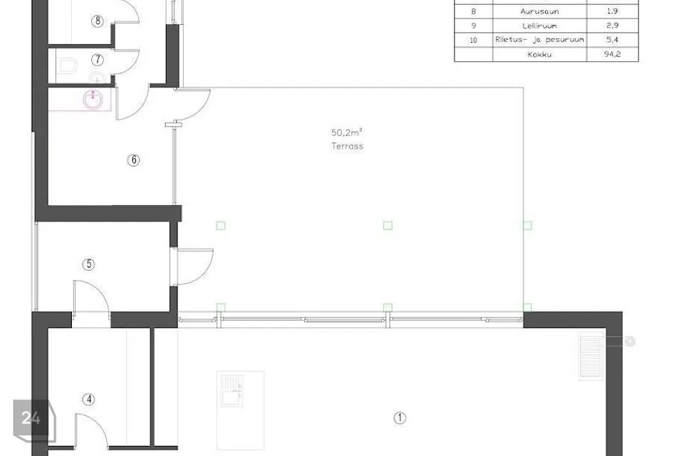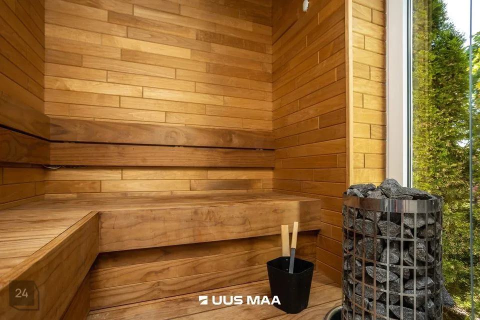 *leilisaun, aurusaun, pesuruum ja puhkeruum väikese köögiga (sissepääs terrassilt)