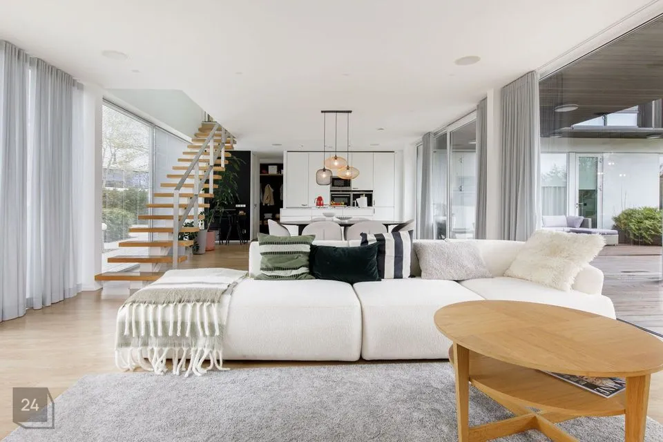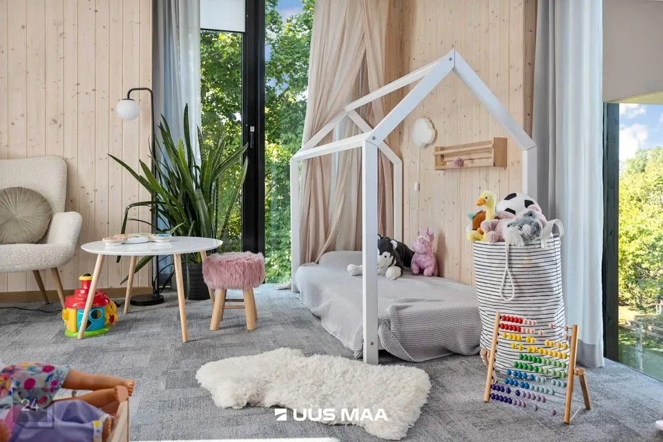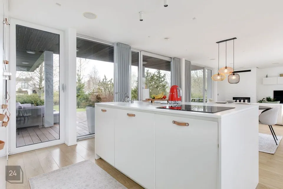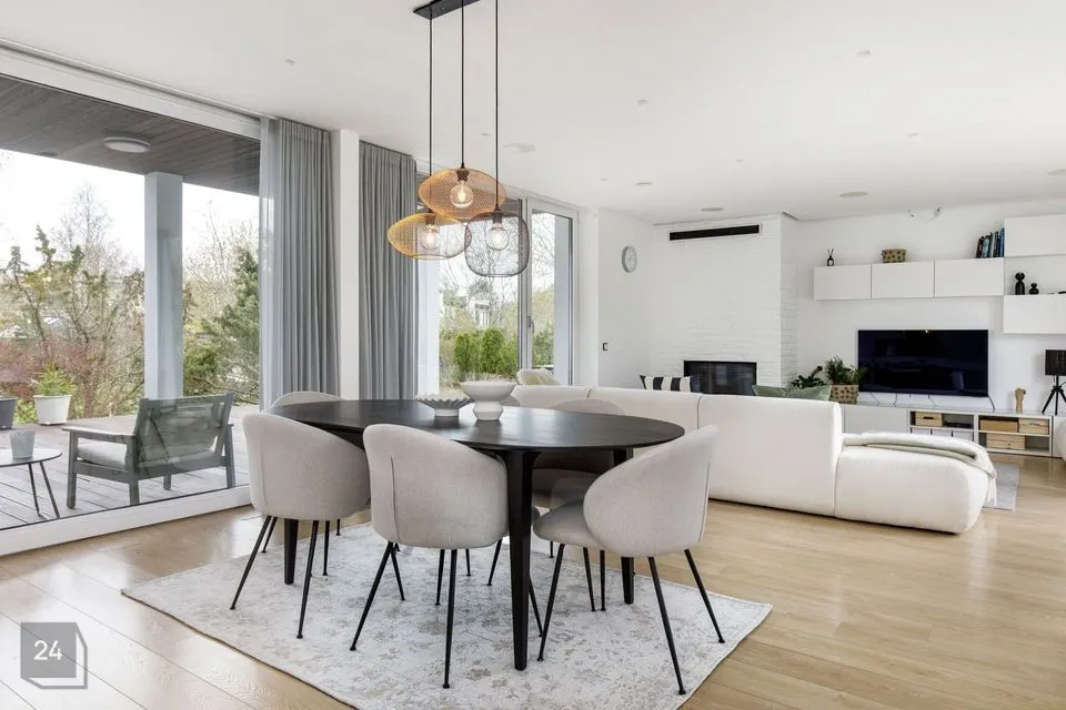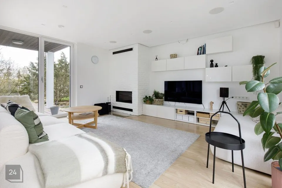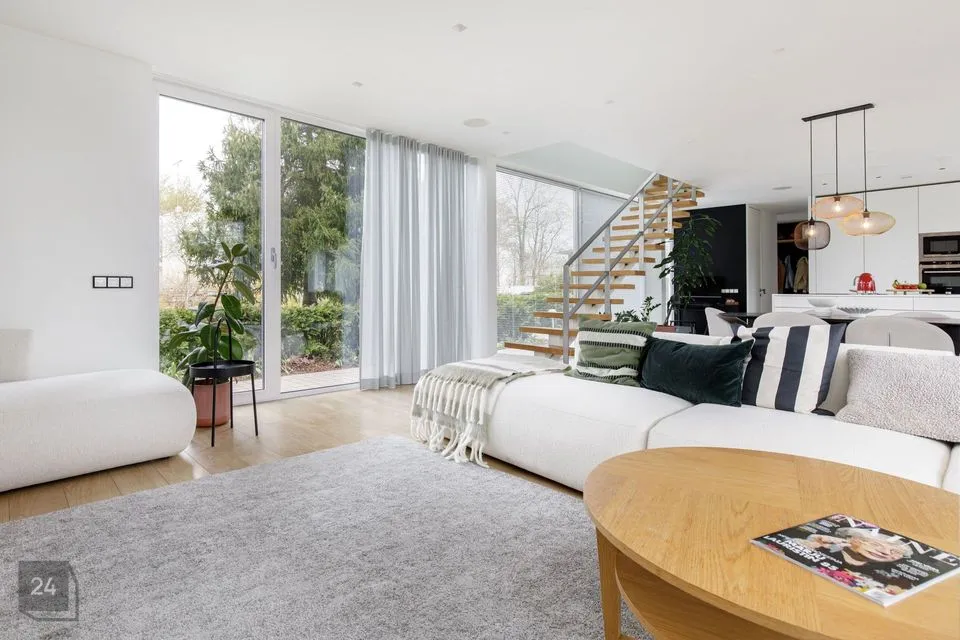 Kodu on valgusküllane, avara planeeringuga ning suurte akendega, mis toovad tuppa rohkelt loomulikku valgust.