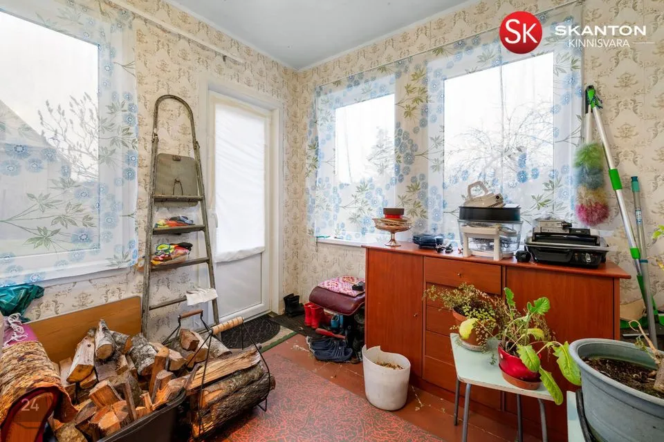 veranda (9,6 m2), esik, elutuba (20,8 m2), köök (11,8 m2),magamistuba (12,6 m2), tualettruum.