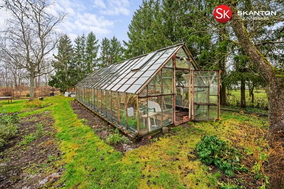 Õueala on võrkaiaga piiratud õue ja aiamaa, kus kasvavad saaki andvad viljapuud ja põõsad ning rõõmustavad silma kenad lillepeenrad. Klaaskasvuhoones (20 m2) saab kasvatada külmaõrnu taimi. Kinnistul asuvad ehitusregistrisse kantud elamu, abihoone (ehitusaluse pinnaga 52 m2), kuur (14 m2) ja suur kasvuhoone (47 m2).