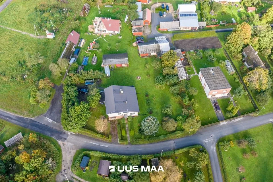 2456-ruutmeetrisel kõrghaljastusega privaatsel kinnistul paikneb lisaks elumajale veel kuur, laut-kuur, kasvuhoone, väike katusealune suveterrass.