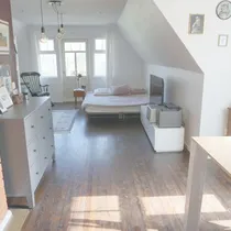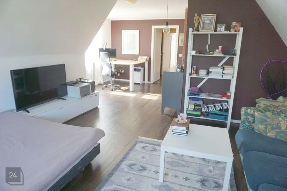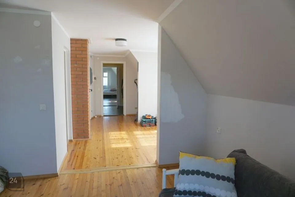 Katusekorrusel on eluruumid. Oma sissekäik väikese esikuga. Trepihall üleval jaotab ruumid kaheks eraldiseisvaks pooleks. Ühel pool köök, WC ja suur tuba (võimalus ehitada rõdu), teisel pool 2 tuba ja WC-duširuum.