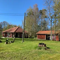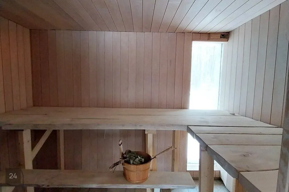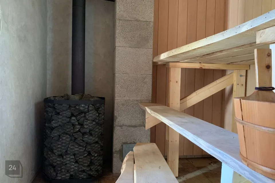 Kinnistul asub saun-abihoone, mille lõpliku sisemise viimistluse saab ise luua. Hoones on kasutusvalmis leiliruum, panipaigad, veesõlm veepuhastussüsteemiga ja avatud istumisala. Lisaks asub kinnistul puukuur-autovarjualune, kuhu mahuvad talvepuud, üks auto ja panipaik nt jalgratastele ja muruniidukile.