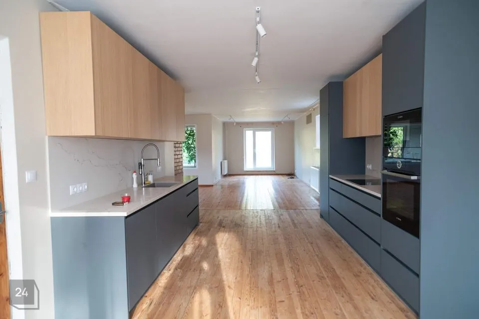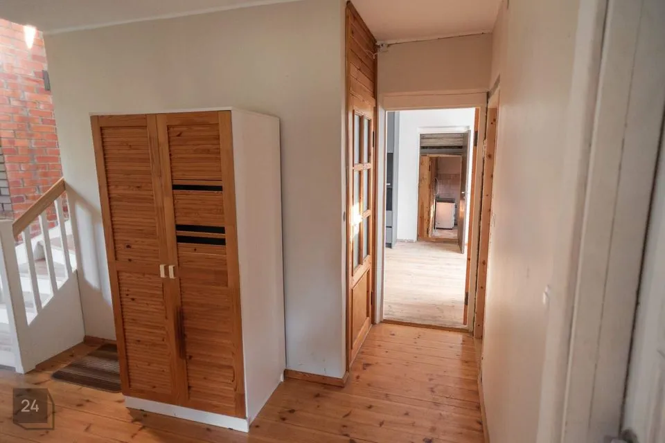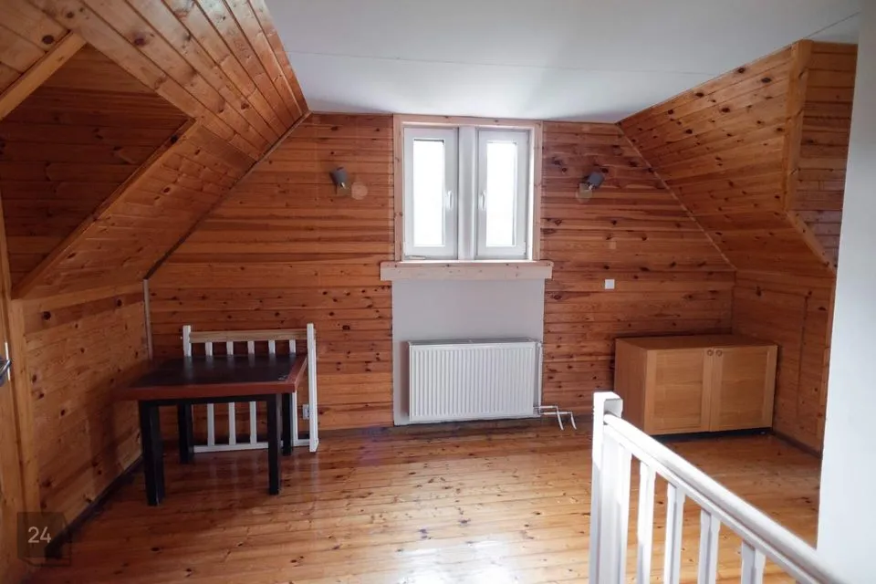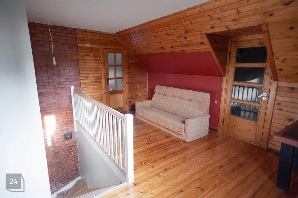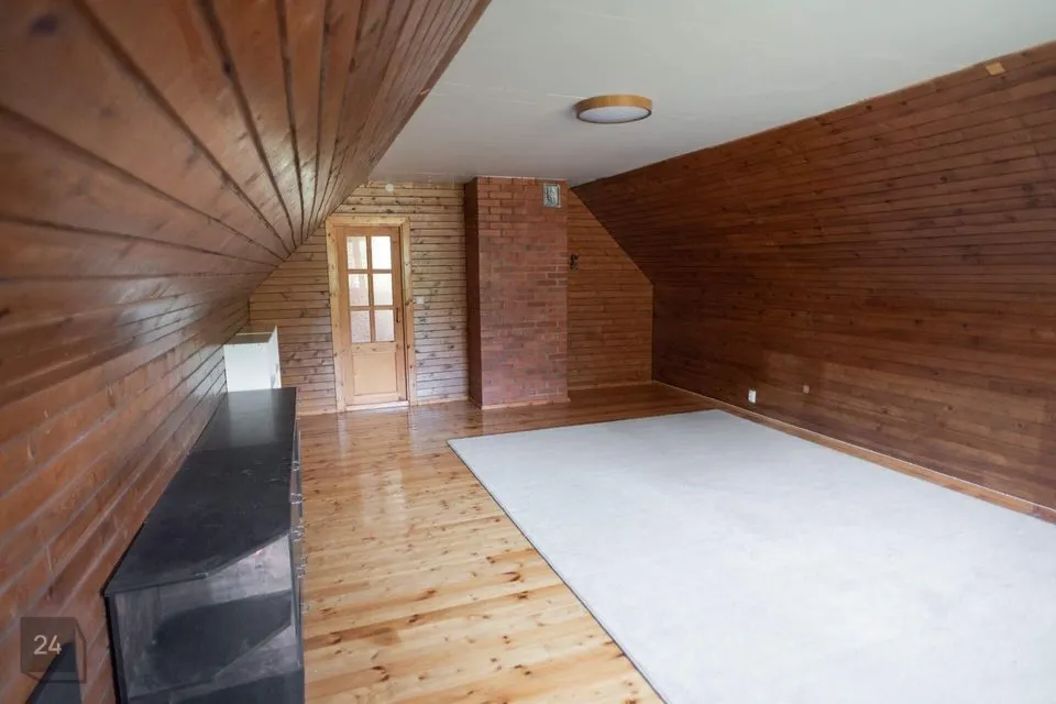 Esimese korruse seinad on pahteldatud ja värvitud ning kogu teise korruse seinad on viimistletud laudisega.