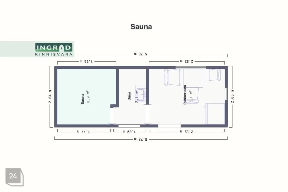 - Eraldi saun koos duširuumi ja puhkeruumiga