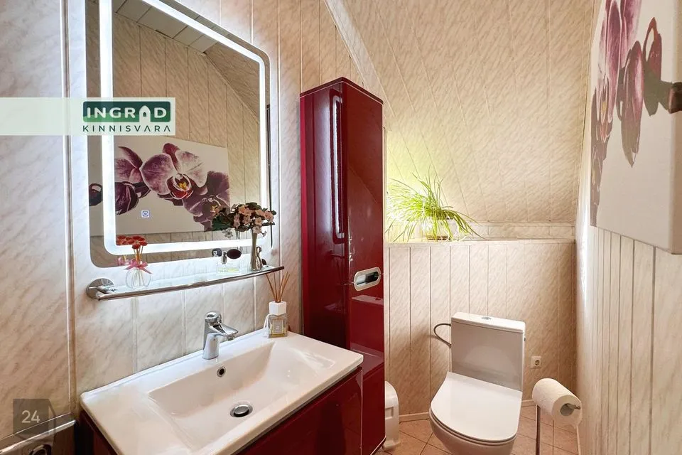 Дом подключён к центральному водоснабжению и канализации, что обеспечивает комфорт и низкие коммунальные расходы. Основным источником отопления служит дровяная печь Buleryan, которая позволяет ещё больше экономить на расходах. Дополнительно в гостиной установлен тепловой насос Cooper&Hunter, который обеспечивает тепло зимой и прохладу летом.
