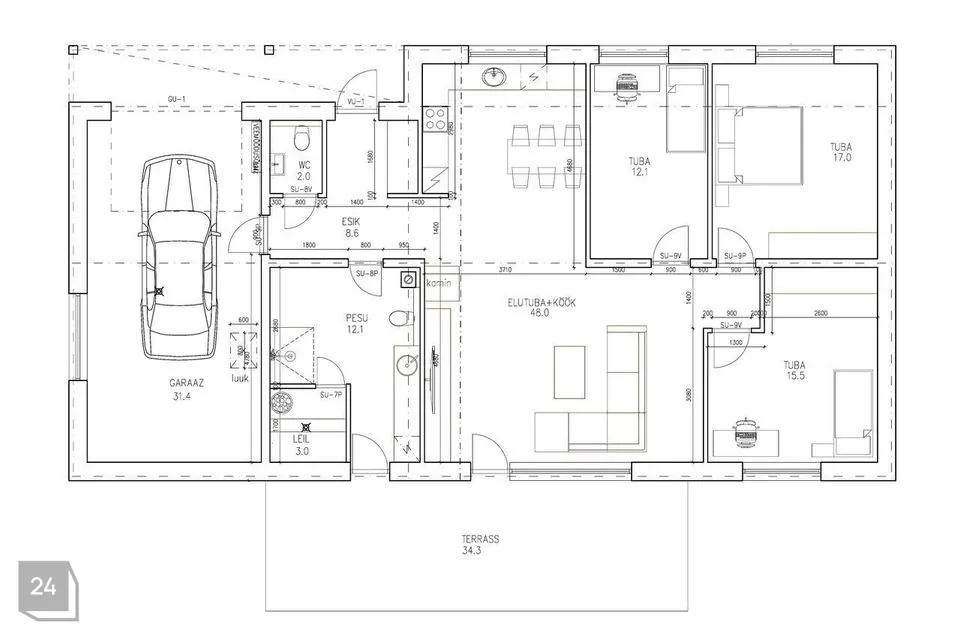Hoone suletud netopind: 149,7m2 (sisaldab garaaži 31,4m2)