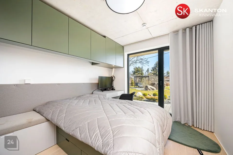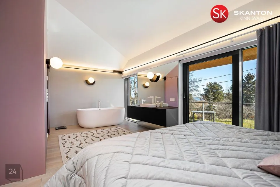 - Magamistuba koos privaatse garderoobi vannitoaga (kivist vann) ja pääsuga terrassile