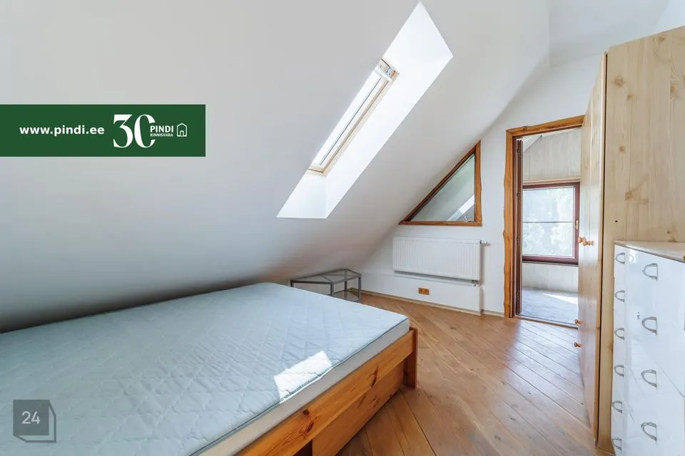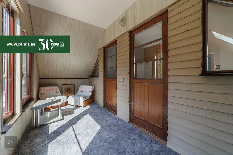 2. korrus: kaks magamistuba (mõlemad 11,4 m²), hall, ruumikas vannituba ja klaasitud lodža (7,6 m²), kust avaneb rahustav vaade ümbrusele