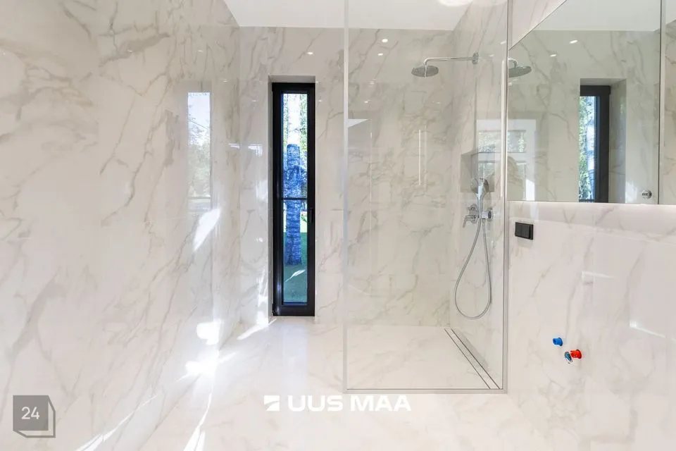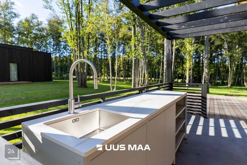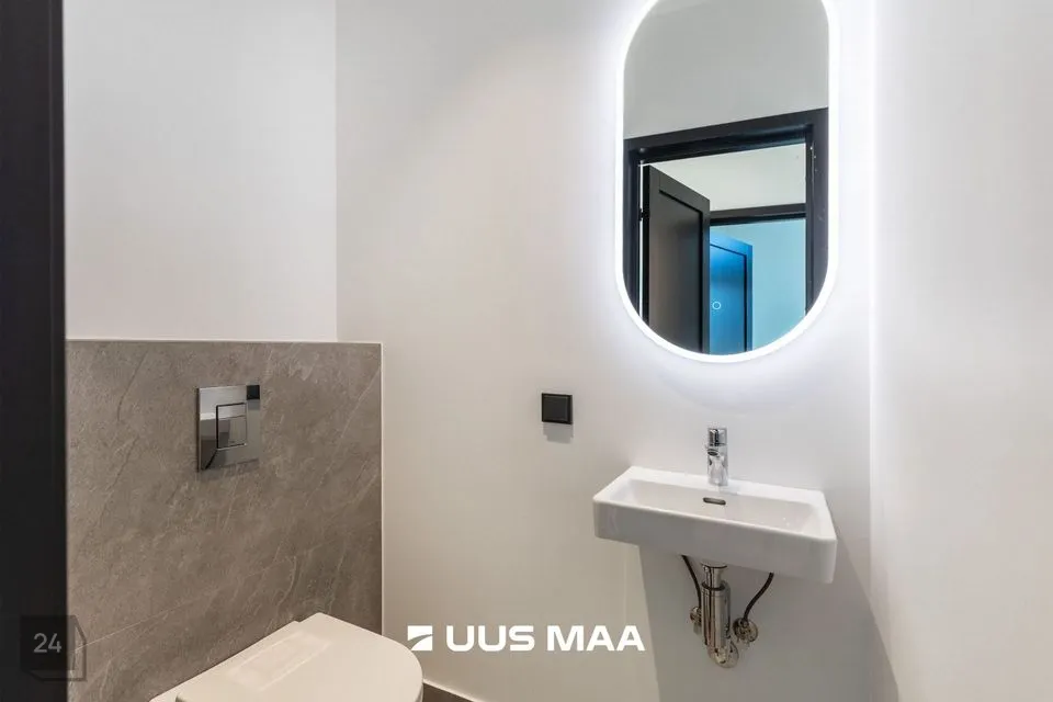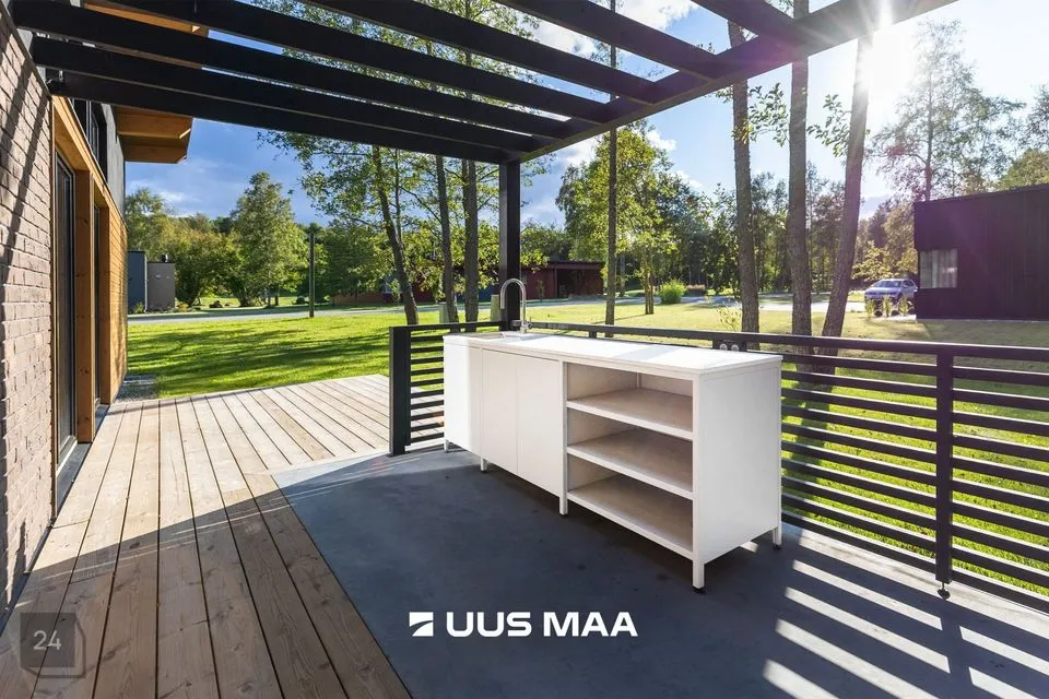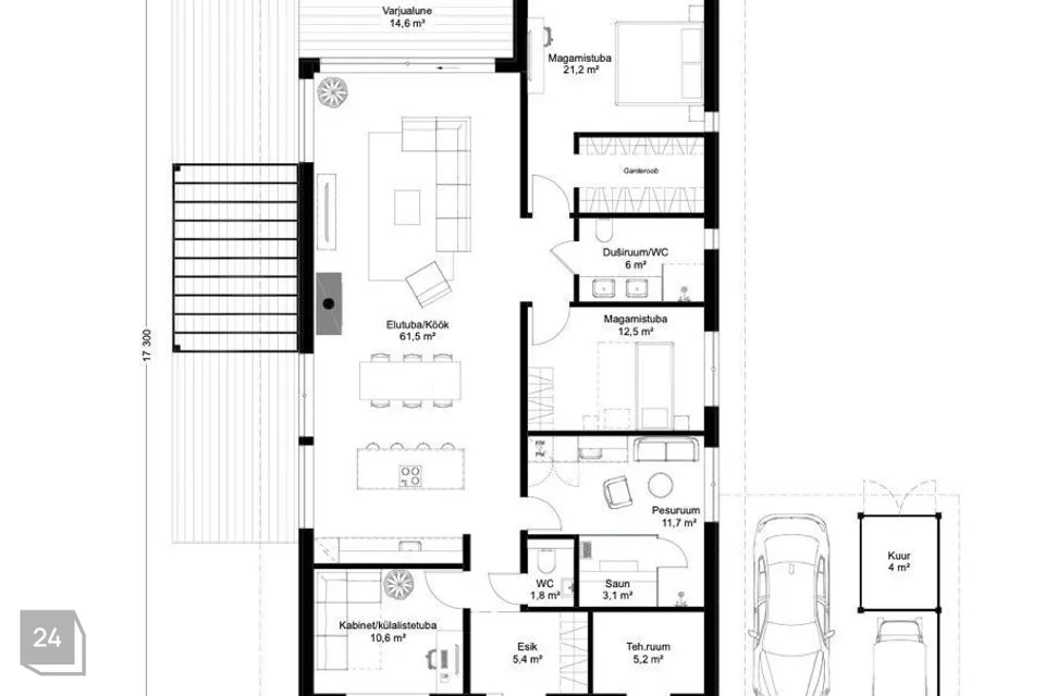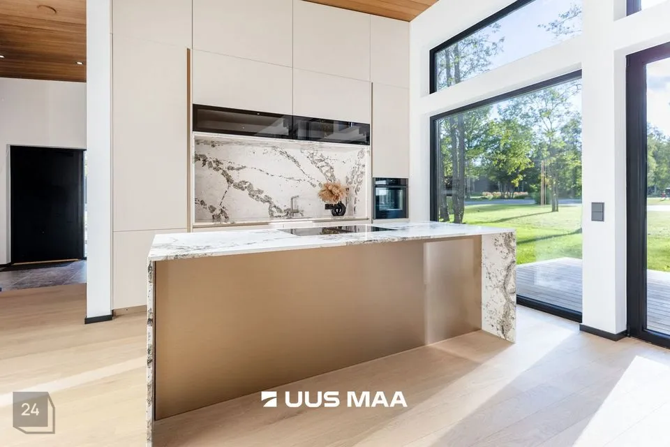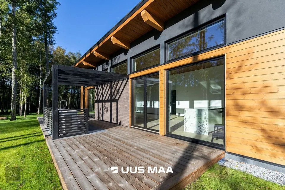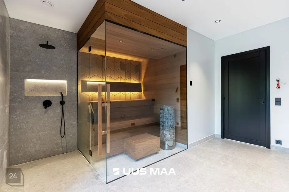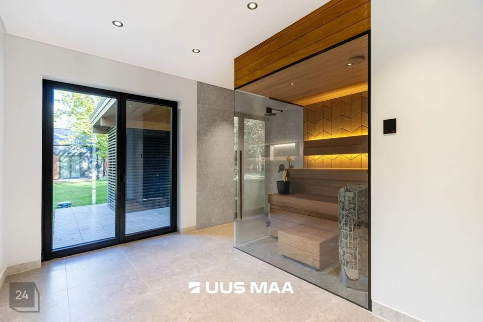 Maja koosseisu kuulub avar elutuba, mida kaunistab avatud Aunmani eritellimusköök maast laeni kappide, köögisaare ja tipptehnikaga; peamagamistuba walk-in garderoobiga ning kaks magamistuba maast laeni akendega; disainersaun 9 kW Harvia elektrikerise ja dušinurgaga; WC; elutoast otsepääsuga terrass koos väliköögiga, mis avaneb kuldsele õhtupäiksele; panipaigaruum; tehnoruum; katusealune auto jaoks.