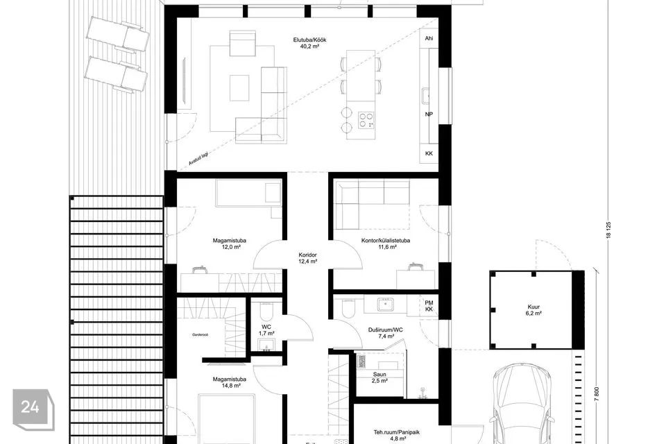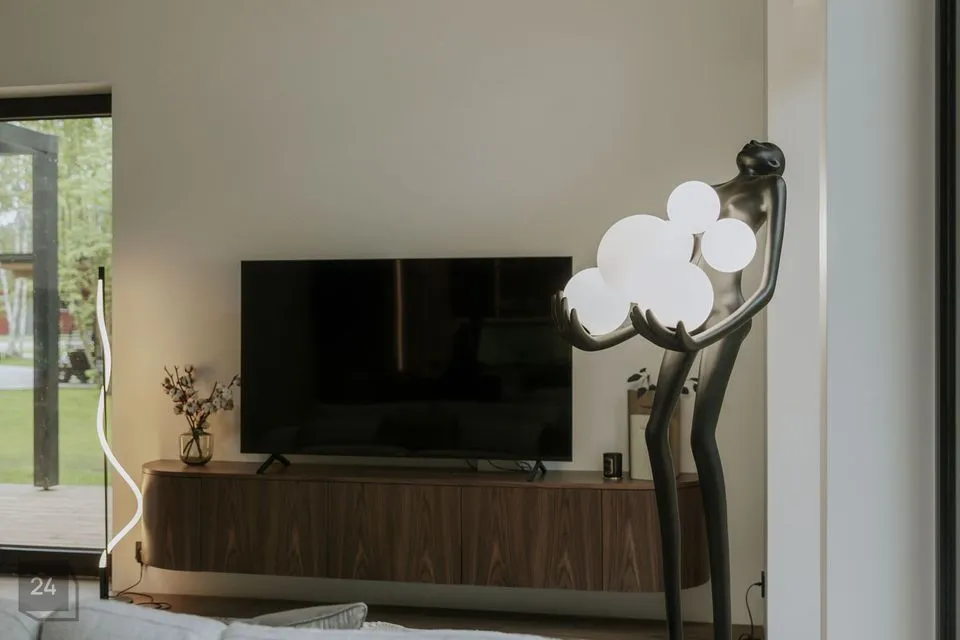 Maja koosseisu kuulub täiesmõõdus klaasfassaadiga elutuba, mida kaunistab avatud Aunmani eritellimusköök maast laeni kappide, köögisaare ja tipptehnikaga; kolm magamistuba maast laeni akendega; Saunumi saun koos dušinurgaga; WC; elutoast otsepääsuga terrass, mis avaneb privaatsele rohelusele ja merele; panipaigaruum; tehnoruum; katusealune auto jaoks koos elektrilaadijaga.