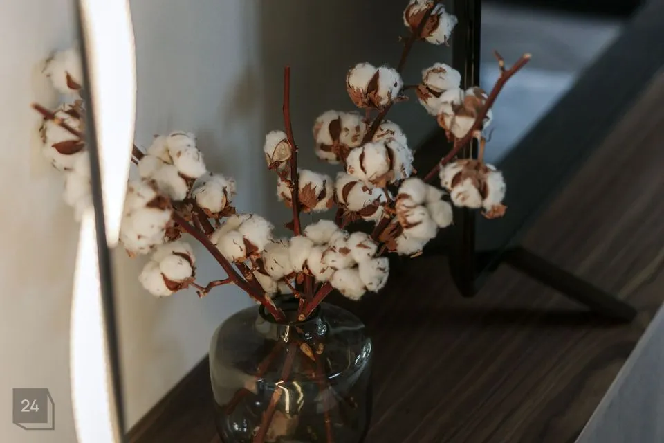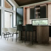 Põrandaid katab naturaalne tammeparkett, mida komplimenteerib puit elutoa laes ning pähklispooniga seinad koridoris koos sisseehitatud Aunmani mööbliga.