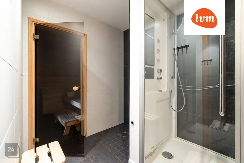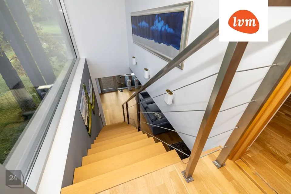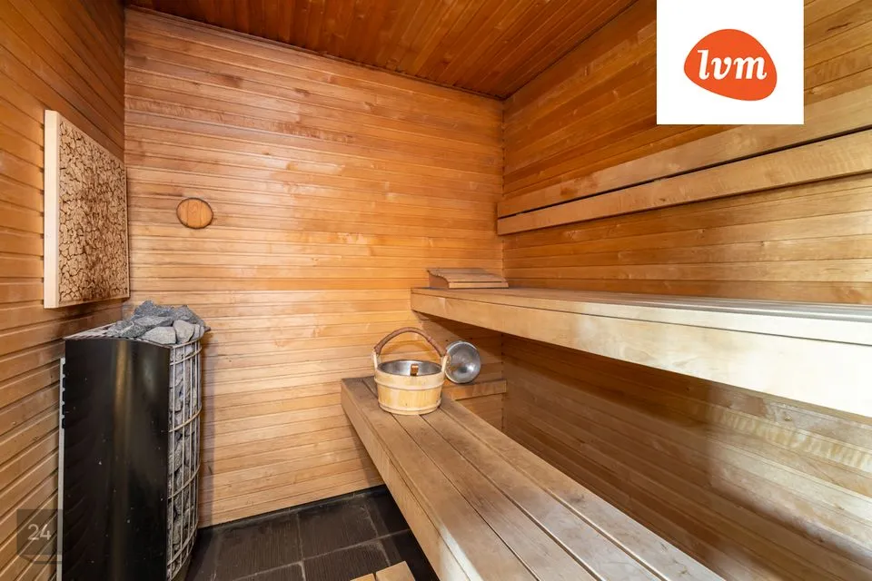 esik; tehnoruum; wc; sauna eesruum koos leiliruumiga+ eraldi arurusaun; suur avatud köök-elutuba, kust pääs mõnusale golfirajavaatega terrassile.