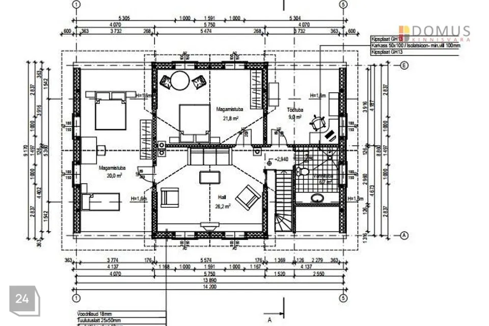 Maja köetav pind on 191,3 m², mis pakub rohkelt ruumi nii püsieluks kui ka suvekoduks.