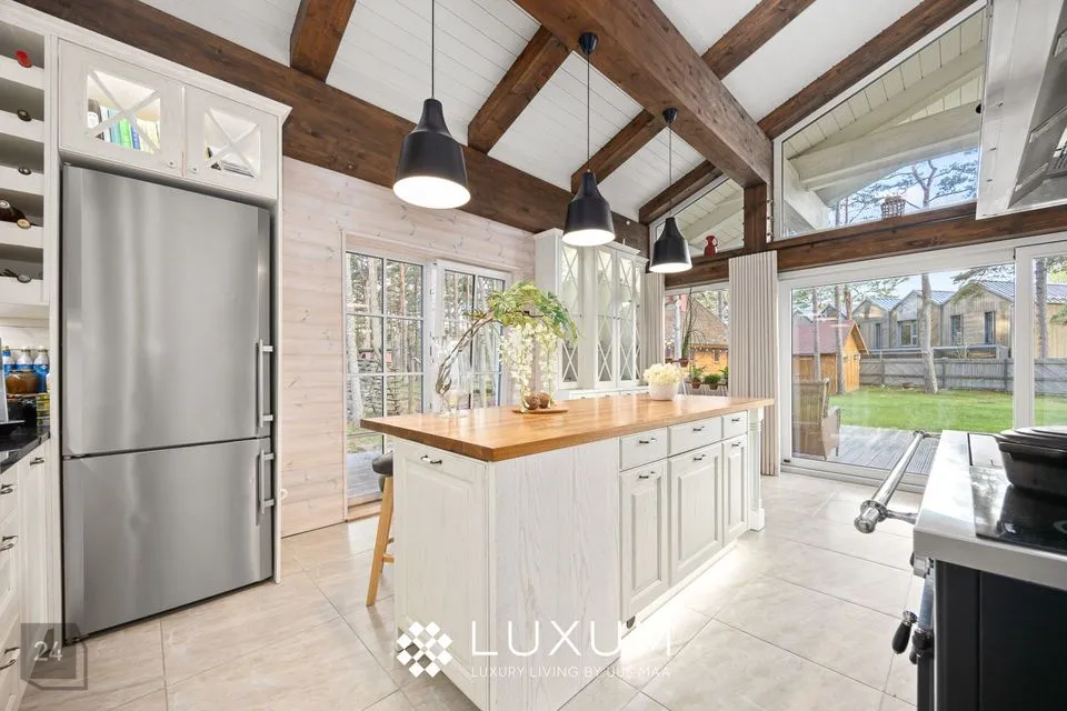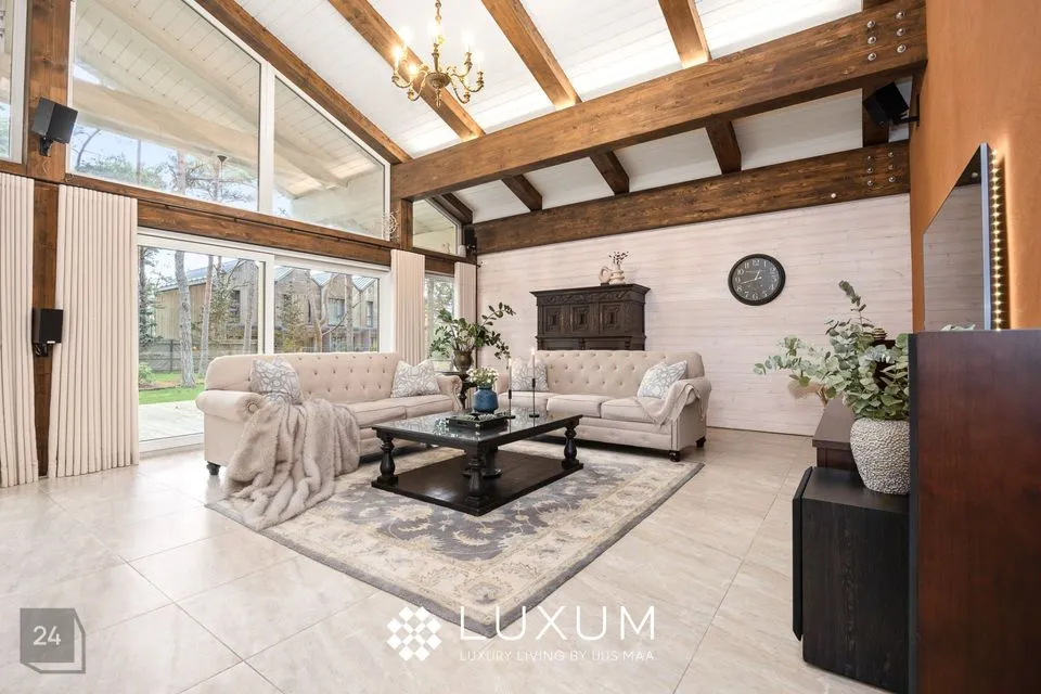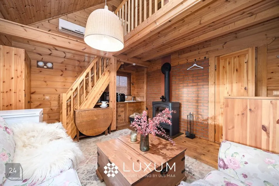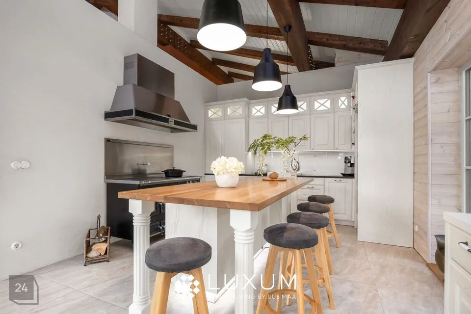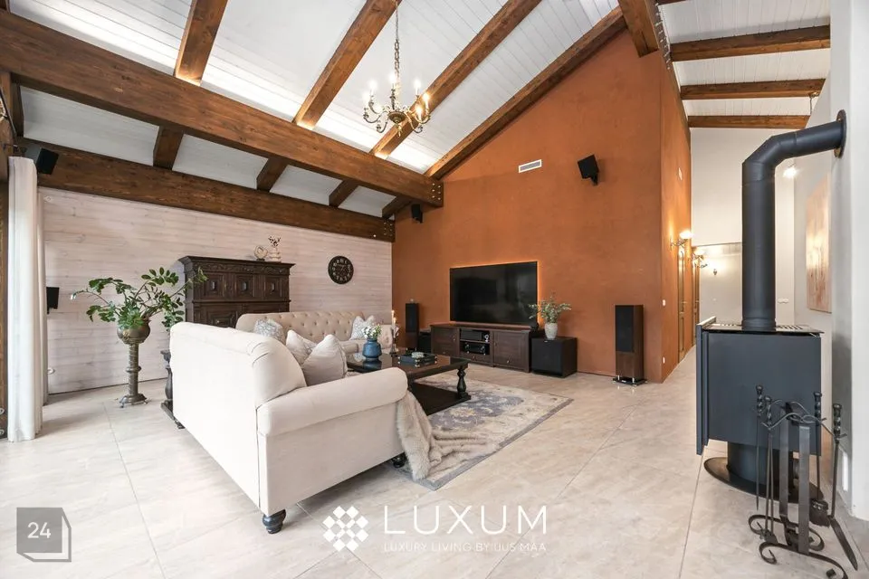 Kõrged talad, mõnus kamin ning õhuline planeering loovad ruumi, mis kutsub nii vaikset hommikukohvi kui ka sumedaid õhtuid pere ja sõpradega nautima.