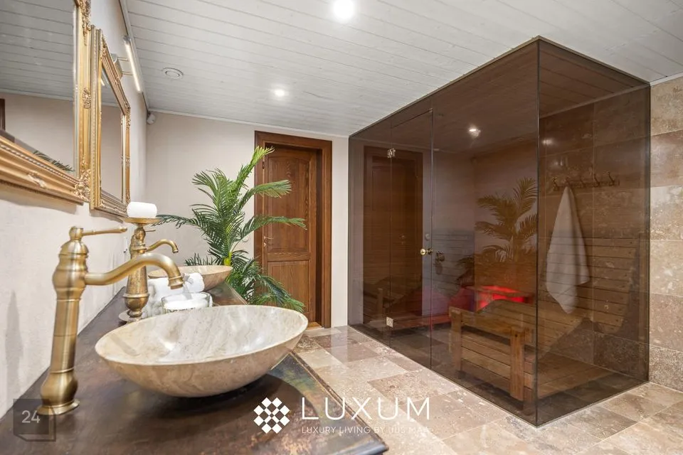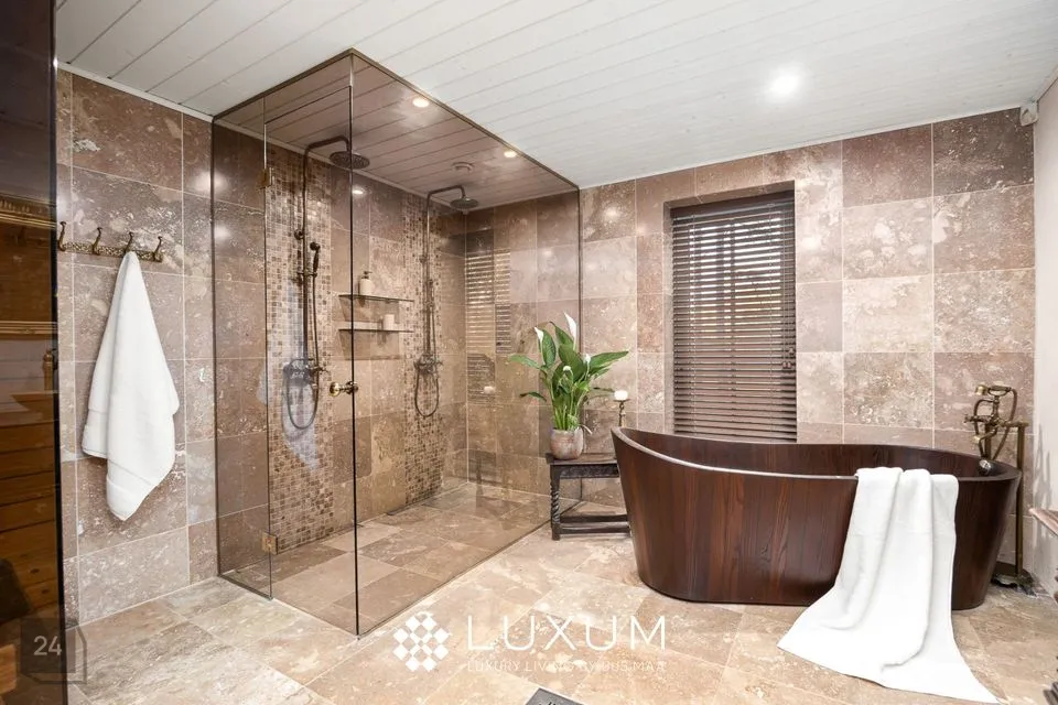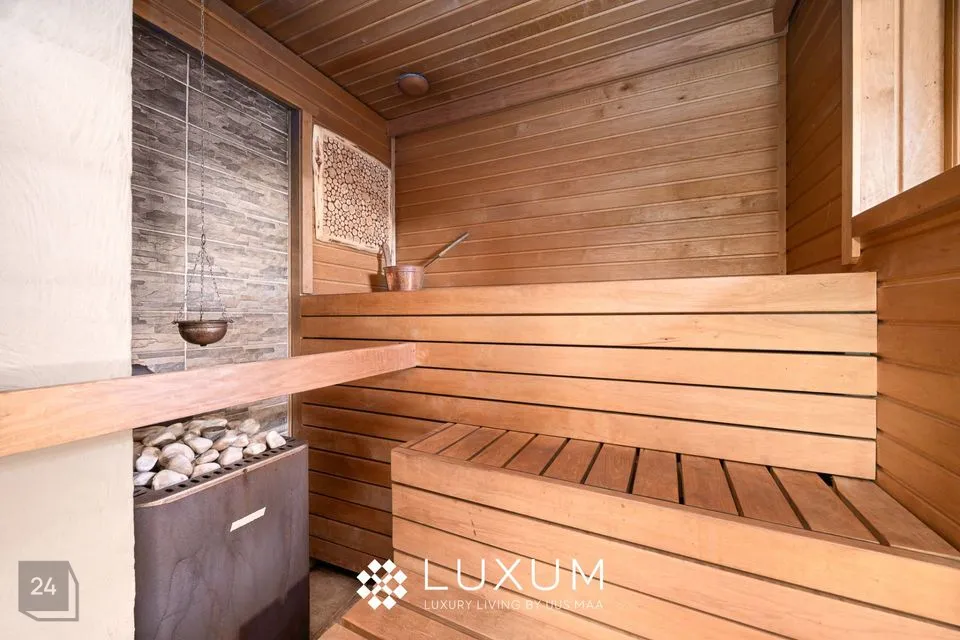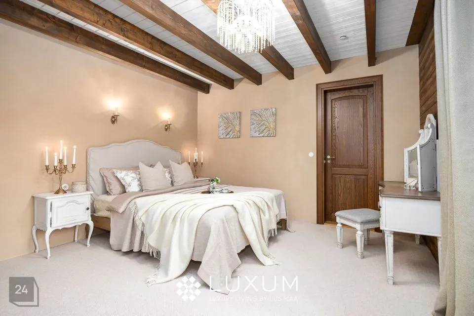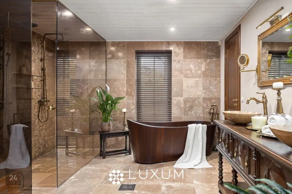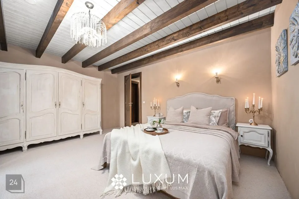 Peamagamistuba on kui omaette oaas - siit pääseb otse luksuslikku vannituppa, mis on kujundatud buduaari-spa vaimus: Eternal KHIS kvaliteetpuidu vann, infrapuna saun, looduslikud materjalid ja pehme valgus loovad rahu ja rituaalide ruumi.