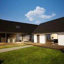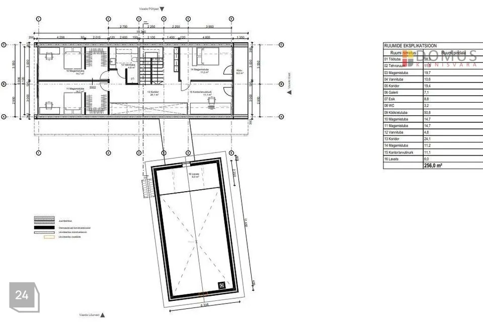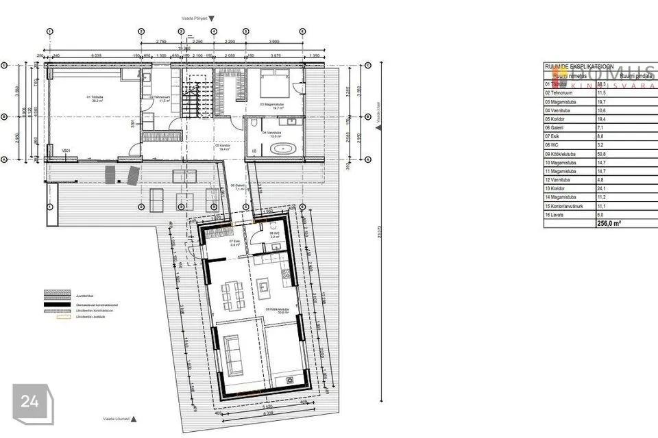 Kahe maja vahele on projektis ette nähtud klaasist galerii (7,1 m²) ehitamine.