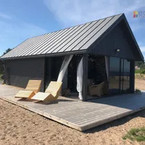 Hoone on projekteeritud A-energiaklassile vastavaks, katusel on 15 kW jagu päikesepaneele ja seinad on laotud Weber FIBO 5 200mm kergplokkidest. Maja on soojustatud 140 mm Kingspan soojustusplaadiga. Maja katusel on stiilne tume Velux katusekivi. Valmimisjärgus hoone on kahe korruseline. Maja peasissepääs on maja keskel, mille kaudu astute suurde koridori (19,4 m²), hoone õhtupäikese poolsel küljel on multifunktsionaalne töötuba (38,3 m²) kuhu saab rajada näiteks suure köögi või söögitoa, kodukontori või kasvõi piljardiruumi. Töötoast pääseb eraldi sissepääsuga soovi korral terrassile. Esimesel korrusel on veel kaks merevaatega ruumi: n.ö. master magamistuba (19,7 m²) ja vannituba (10,6 m²) Hoone keskele jääb 11,5 m² suurune tehnoruum, kus asuvad päikesepaneelide juhtseade, õhk-vesi soojuspumba ja ventilatsiooni agregaadid.