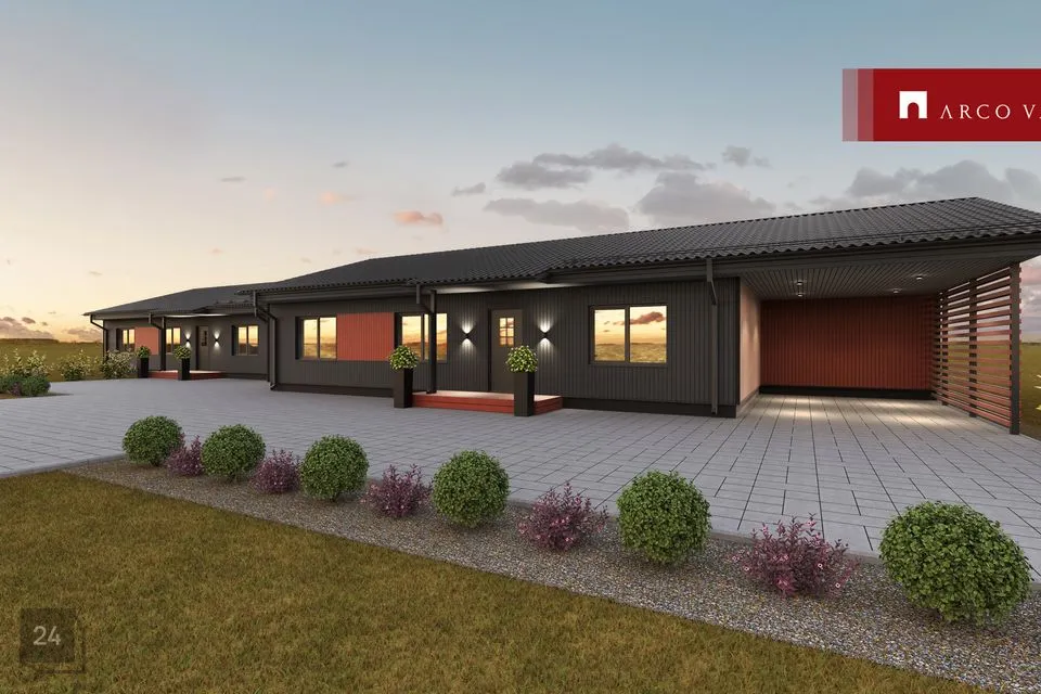 Paarismaja boksi köetav pind 135,3 m², millele lisandub 16,8 m² terrass ja autovarjualune 26,6 m².